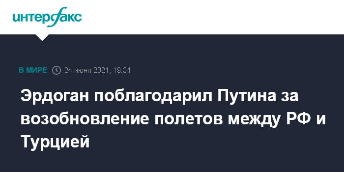 "Обсуждались актуальные вопросы российско-турецкого взаимодействия в различных областях. Реджеп Тайип Эрдоган выразил признательность за принятое российской стороной решение о возобновлении авиасообщения с Турцией, а также за начало поставок российской вакцины "Спутник V", - говорится в сообщении.
