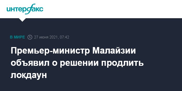 Премьер-министр Малайзии объявил о решении продлить локдаун