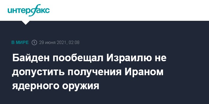 Байден пообещал Израилю не допустить получения Ираном ядерного оружия