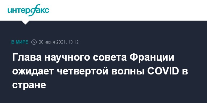 Москва. 30 июня. INTERFAX.RU - Глава научного совета при президенте Франции профессор Жан-Франсуа Дельфрэси заявил, что страна столкнется с четвертой волной пандемии COVID-19.