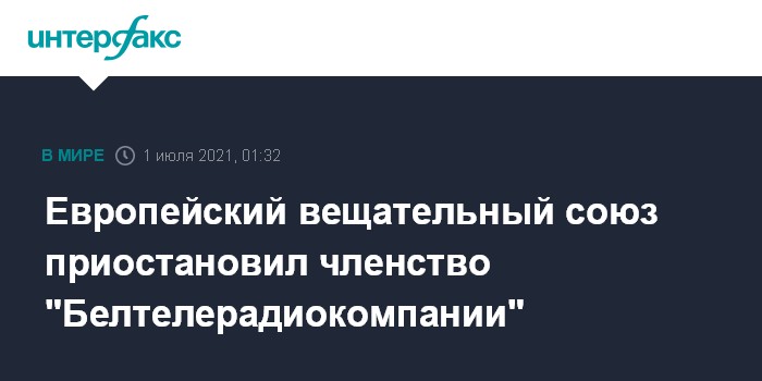 Москва. 1 июля. INTERFAX.RU - Европейский вещательный союз (ЕВС) с 1 июля приостановил членство белорусского государственного медиахолдинга "Белтелерадиокомпания" (БТРК) в организации, говорится в распространенном сообщении EВС.