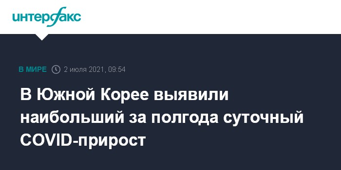 Москва. 2 июля. INTERFAX.RU - В Южной Корее за последние сутки зафиксировали антирекорд по числу новых случаев заражения коронавирусом COVID-19, сообщает в пятницу агентство "Ренхап".
