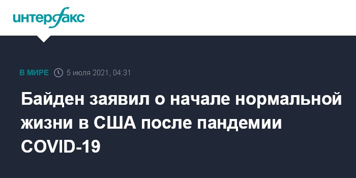 Москва. 5 июля. INTERFAX.RU - День независимости США (4 июля) в 2021 году знаменуется тем, что страна начинает возвращаться к нормальной жизни после пандемии коронавируса, заявил президент США Джо Байден.