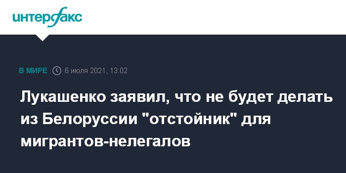 Москва. 6 июля. INTERFAX.RU - Президент Белоруссии Александр Лукашенко заявил, что власти республики занимались и продолжат заниматься основными вызовами на границе, но не станут сдерживать нелегальных мигрантов