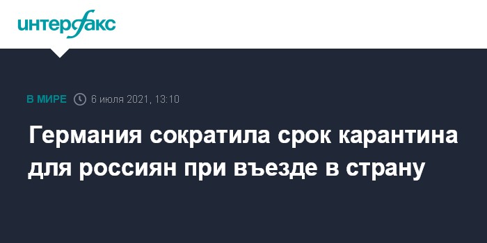 Москва. 6 июля. INTERFAX.RU - Власти Германии смягчили эпидемиологические правила въезда для прибывающих из нескольких стран, в том числе из России, Великобритании и Португалии. Об этом сообщают западные СМИ со ссылкой на Институт Роберта Коха.