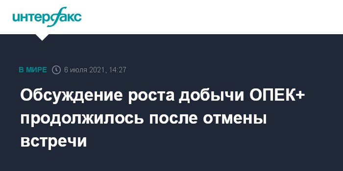 Москва. 6 июля. INTERFAX.RU - Обсуждение вариантов увеличения нефтедобычи ключевыми участниками сделки ОПЕК+ продолжается после отмены полноформатной встречи министров коалиции в понедельник, говорят источники "Интерфакса".