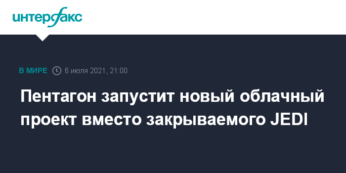 Решение о закрытии JEDI в министерстве обороны США объяснили тем, что проект более не соответствует требованиям Пентагона, отметив, в частности, изменение его требований к облачным сервисам и прогресс в отрасли.