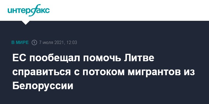 Москва. 7 июля. INTERFAX.RU - Европейский Союз намерен помочь Литве справиться с потоком мигрантов из стран Ближнего Востока и северной Африки, которые добираются в Евросоюз через Белоруссию, сообщает во вторник Associated Press.