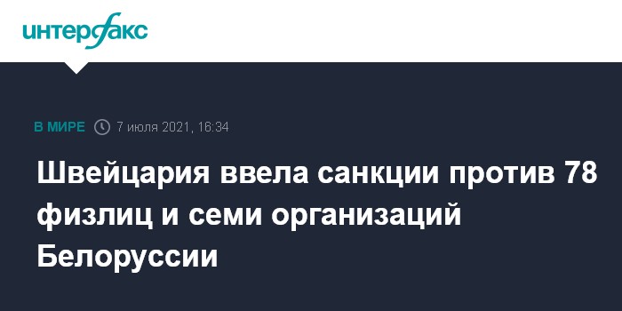 В санкционные списки швейцарские власти включили 78 физических и семь юридических лиц. Под санкции, в частности, попали президент Белоруссии Александр Лукашенко, его сыновья Виктор и Дмитрий, а также супруга старшего сына Виктора - Лилия.