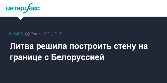 Москва. 7 июля. INTERFAX.RU - В Литве планируют построить забор на границе с Белоруссией, чтобы сдержать нелегальную миграцию, сообщила литовский премьер-министр Ингрида Шимоните.