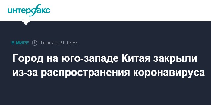 Москва. 8 июля. INTERFAX.RU - Решением властей юго-западной китайской провинции Юньнань с четверга закрыты все пункты выезда и въезда в город Жуйли на границе с Мьянмой из-за распространения коронавирусной инфекции, сообщают местные СМИ.