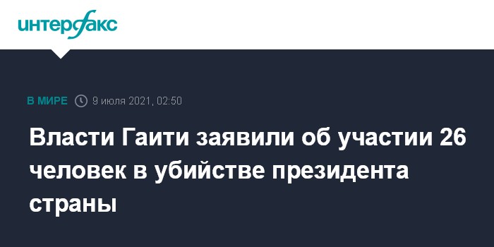 Москва. 9 июля. INTERFAX.RU - Отряд наемников, убивших президента Гаити Жовенеля Моиза, состоял из 26 человек, заявил министр по делам голосования и межпартийных отношений Матиас Пьер. Об этом сообщает The Guardian.
