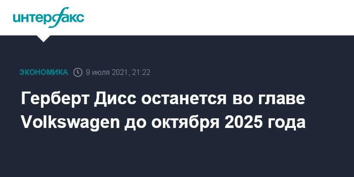 Москва. 9 июля. INTERFAX.RU - Гендиректор Volkswagen AG Герберт Дисс останется во главе компании до октября 2025 года. Компания сообщила, что ее наблюдательный совет продлил продление контракта с ним на этот срок.