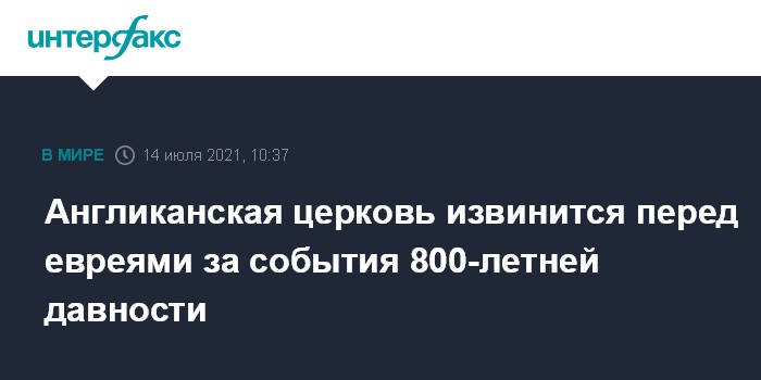 Этой весной Англия пережила волну громких антисемитских инцидентов на фоне конфликта между Израилем и Палестиной. Планируя официальное извинение, Церковь Англии берет на себя ответственность за христианский антисемитизм, который предшествовал ее основанию в 1534 году. "Среди многих непонятных вещей в этой запутанной истории то, что в 1290 году, когда евреи были изгнаны из Англии, Англиканской церкви еще не существовало", - написал в твиттере профессор иудаики в Университете Коннектикута Джеффри Шоулсон.