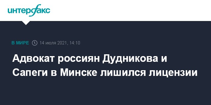 Адвокат россиян Дудникова и Сапеги в Минске лишился лицензии