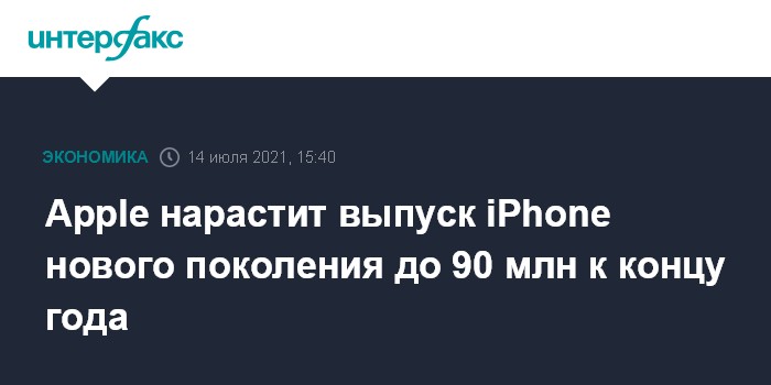 Москва. 14 июля. INTERFAX.RU - Apple просит поставщиков произвести до 90 млн iPhone нового поколения в текущем году, что существенно выше по сравнению с объемом поставок в 2020 году, пишет The Wall Street Journal со ссылкой на осведомленные источники.
