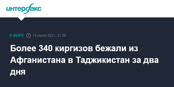 Москва. 14 июля. INTERFAX.RU - За последние два дня 347 афганских этнических киргизов перешли на таджикскую территорию, спасаясь от вооруженной группировки движения "Талибан" (запрещено в РФ), сообщил в среду вечером пресс-центр пограничных войск Таджикистана.