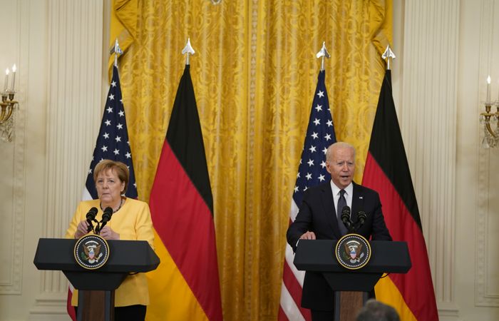"Мы с канцлером согласны, что нельзя позволять России использовать энергетику как оружие для того, чтобы угрожать соседям", - сказал Байден в ходе совместной пресс-конференции с Меркель в Вашингтоне.