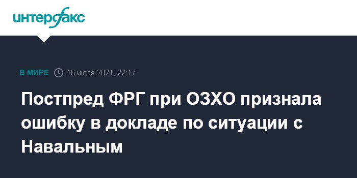 Москва. 16 июля. INTERFAX.RU - Постпред ФРГ при ОЗХО признала, что в докладе организации по ситуации с Навальным была допущена "техническая ошибка", сообщил постпред РФ при ОЗХО Александр Шульгин в эфире телеканала "Россия-24".