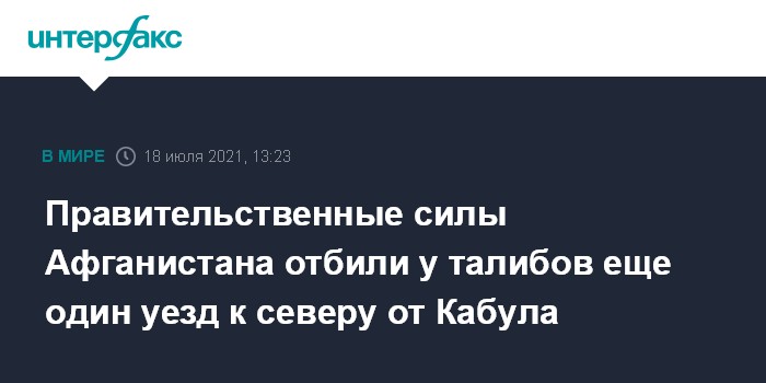 Правительственные силы Афганистана отбили у талибов еще один уезд к северу от Кабула