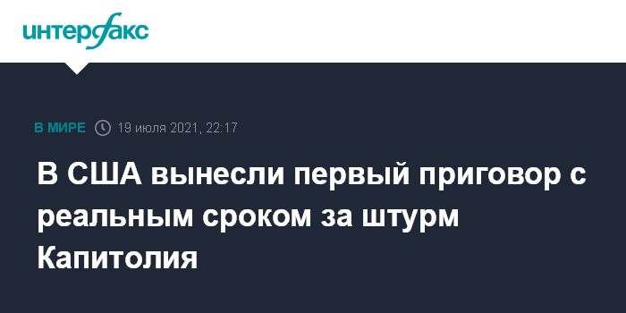 Отмечается, что таким образом 38-летний Пол Ходжкинс стал первым участником событий 6 января, который получил реальный срок по уголовному делу за совершение тяжкого преступления.