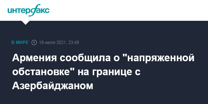 Москва. 19 июля. INTERFAX.RU - Обстановка на границе Армении и Нахичеванской автономной республики напряженная, сообщает Минобороны Армении.