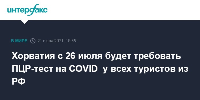 "В целях защиты здоровья и предотвращения распространения коронавируса были введены дополнительные эпидемиологические меры для въезжающих в Хорватию. Их цель - предотвратить завоз новых штаммов COVID-19. В частности, из-за ухудшения эпидситуации в Великобритании, на Кипре и в Российской Федерации в качестве дополнительной меры с 26 июля у туристов из этих стран на границе будут требовать отрицательный тест на коронавирус, сделанный в своей стране, независимо от того, вакцинированы ли они или имеют справку о перенесенной болезни", - говорится в сообщении на сайте учреждения.