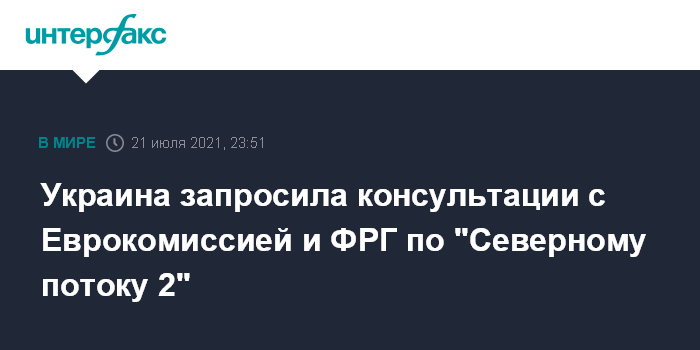 Москва. 21 июля. INTERFAX.RU - Киев инициирует консультации с Еврокомиссией и Германией по "Северному потоку-2" после официального объявления о сделке между Германией и США, заявил министр иностранных дел Украины Дмитрий Кулеба.