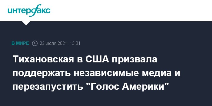 Тихановская предложила перезапустить службу "Голос Америки" в Белоруссии. По её мнению, это "станет мощным сигналом беларусам со стороны США и создаст дополнительный источник информации о том, как другие страны поддерживают Беларусь, - в ответ на пропаганду режима".