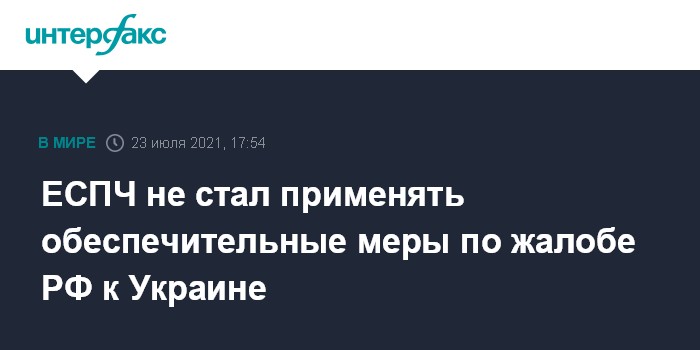 Москва. 23 июля. INTERFAX.RU - Европейский суд по правам человека (ЕСЧП) не стал применять обеспечительные меры в рамках межгосударственной жалобы России на Украину.