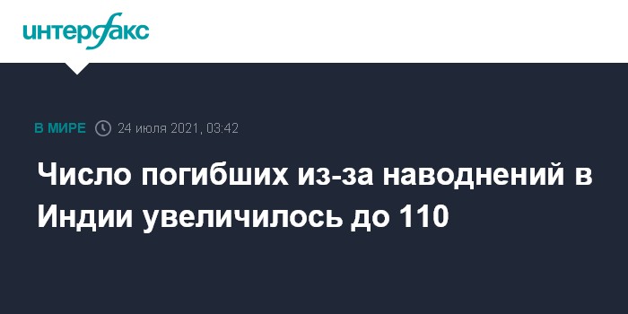 Москва. 24 июля. INTERFAX.RU - По меньшей мере 110 человек погибли в результате оползней и наводнений, вызванных проливными дождями в западном индийском штате Махараштра, cообщает BBC News.