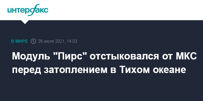 В госкорпорации сообщили, что после анализа телеметрии "Науки" отстыковка модуля "Пирс" от МКС перенесена на сутки, на 24 июля.
