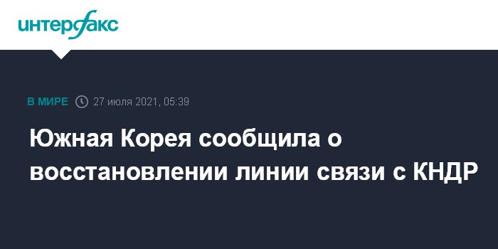 Москва. 27 июля. INTERFAX.RU - Южная Корея и КНДР восстановили линии для связи между двумя странами, разорванные в прошлом году, сообщает во вторник администрация южнокорейского президента.