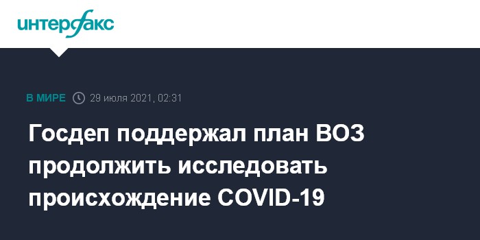 "Госсекретарь Блинкен подтвердил, что США поддерживают планы ВОЗ по проведению дополнительных исследований происхождения COVID-19, в том числе в Китайской Народной Республике, для лучшего понимания нынешней пандемии и предотвращения будущих", - говорится в сообщении официального представителя госдепа Неда Прайса.