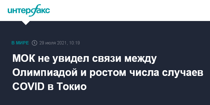 Москва. 29 июля. INTERFAX.RU - В Международном олимпийском комитете (МОК) в четверг заверили, что не выявили фактов, указывающих на взаимосвязь между проведением Олимпиады в Токио и ускорением распространения COVID-19 в Японии.