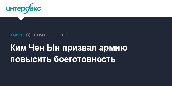 Москва. 30 июля. INTERFAX.RU - Лидер Северной Кореи Ким Чен Ын обвинил "враждебные силы" в усилении "отчаянных и настойчивых военных учений для агрессии" и призвал армию приложить максимальные усилия для повышения боевой эффективности, сообщает ЦТАК в пятницу.
