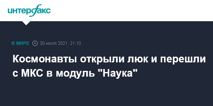 Москва. 30 июля. INTERFAX.RU - Космонавты на МКС открыли люки между станцией и модулем "Наука" после продувки топливной системы, сообщили в "Роскосмосе".