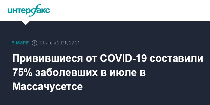 Привившиеся от COVID-19 составили 75% заболевших в июле в Массачусетсе