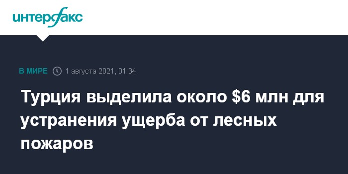 Турция выделила около $6 млн для устранения ущерба от лесных пожаров