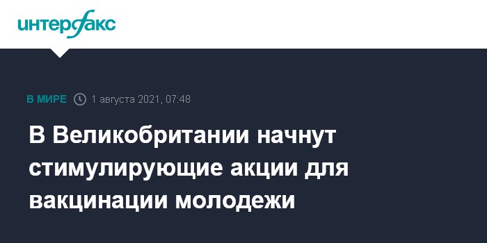 Москва. 1 августа. INTERFAX.RU - Министерство здравоохранения Великобритании заявило, что в стране начнут предлагать скидки на заказ еды и такси молодым людям, привившимся от коронавируса. Об этом сообщает BBC News.