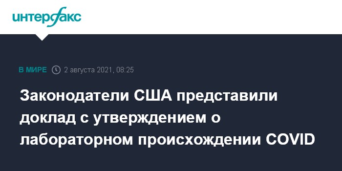 Москва. 2 августа. INTERFAX.RU - Главный республиканец Комитета по международным делам Палаты представителей Мак Маккол представил в понедельник доклад с утверждениями о наличии доказательств того, что коронавирус COVID-19 "просочился" из лаборатории Уханьского института вирусологии.