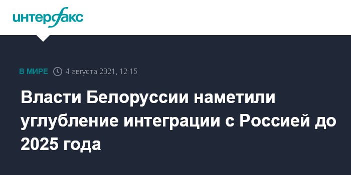 Москва. 4 августа. INTERFAX.RU - Главным вектором политики Белоруссии на 2021-2025 годы станет углубление двусторонней интеграции с Россией в рамках Союзного государства, следует из утвержденной президентом Александром Лукашенко программы социально-экономического развития республики. Программа опубликована на Национальном правовом интернет-портале.