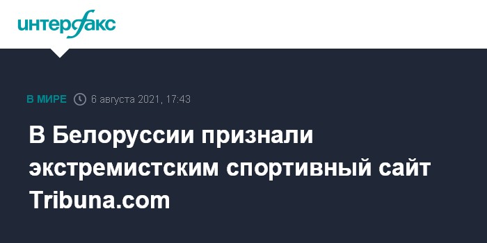 Москва. 6 августа. INTERFAX.RU - Суд Железнодорожного района Витебска признал экстремистским ресурсом спортивный сайт Тribunа.cоm и его страницы в соцсетях, и запретил их, сообщила в Telegram пресс-секретарь МВД Белоруссии Ольга Чемоданова.