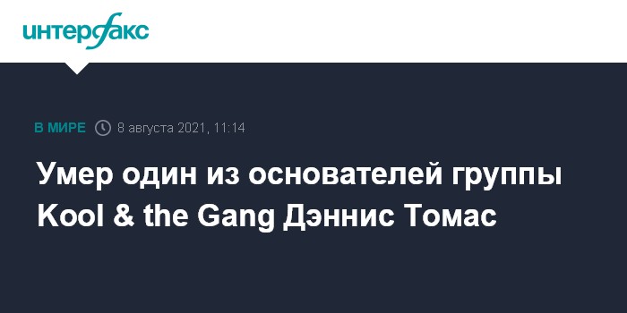Москва. 8 августа. INTERFAX.RU - Сооснователь соул-группы Kool & the Gang Дэннис Томас умер в субботу в возрасте 70 лет, сообщает агентство Associated Press.