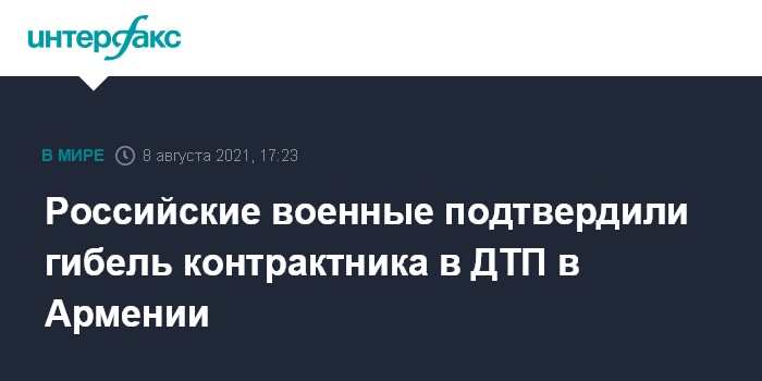 Москва. 8 августа. INTERFAX.RU - Российское командование в Армении участвует в проверке в связи с гибелью в аварии военнослужащего военной базы РФ и ранения его четверых сослуживцев.