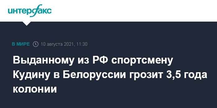 Москва. 10 августа. INTERFAX.RU - Прокурор запросил для бойца ММА, заслуженного мастера спорта Белоруссии Алексея Кудина, который был экстрадирован из России, наказание в виде 3,5 лет колонии, сообщает во вторник незарегистрированный в республике правозащитный центр "Весна".