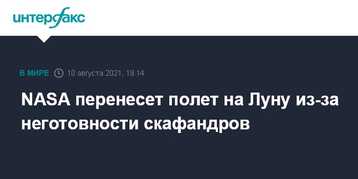 Москва. 10 августа. INTERFAX.RU - NASA отложит полет на Луну по программе "Артемида", планировавшийся на 2024 год, из-за неготовности скафандров xEMU, говорится в докладе Генеральной инспекции агентства.