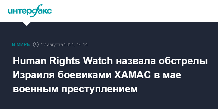 Москва. 12 августа. INTERFAX.RU - Боевики палестинской группировки ХАМАС, контролирующей сектор Газа, в ходе 11-дневного конфликта с Израилем в мае 2021 года нарушили закон о запрещении неизбирательных атак и совершили военные преступления, сообщила в четверг в отчете международная правозащитная организация Human Rights Watch.
