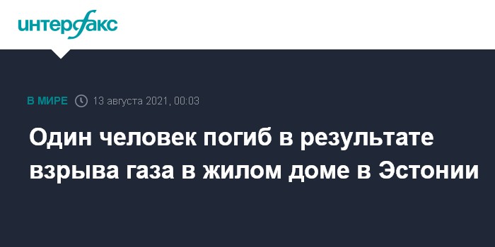Москва. 13 августа. INTERFAX.RU - В Эстонии в городе Тарту в результате взрыва газа в жилом доме на улице Яама в четверг погиб один человек, еще восемь пострадали.