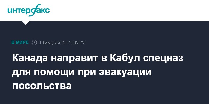 Москва. 13 августа. INTERFAX.RU - Правительство Канады направит в Кабул подразделение спецназа, который будет обеспечивать безопасность сотрудников канадского посольства в процессе его эвакуации и до закрытия, сообщило агентство Associated Press со ссылкой на информированный источник.